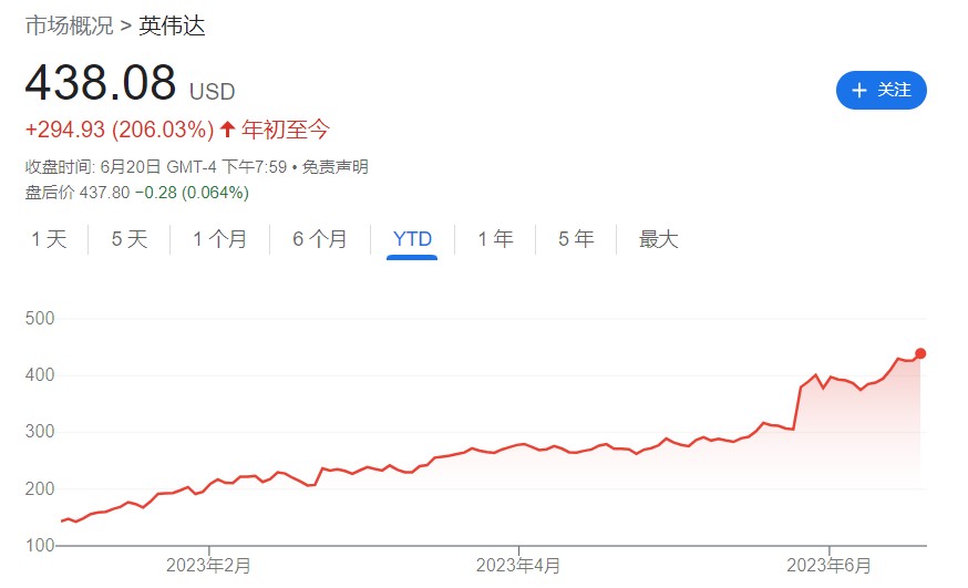 今年迄今为止,英伟达的股价已经飙升了 194%,过去一个月累计上涨 37%,市值飙升至超过万亿美元,成为美国市值第五大的公司。
