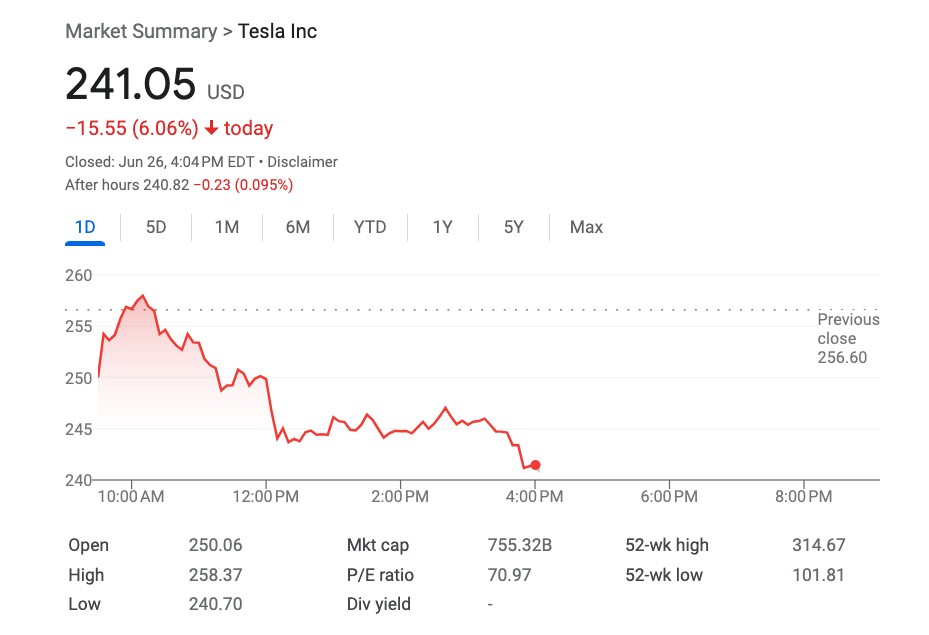 不過,近幾日特斯拉的漲勢有熄火態勢,短短几個交易日,股價較高點下跌超過 10%。