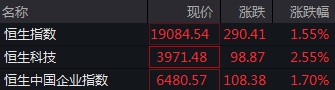 恒生科技漲逾 2.5%,雲計算、地產走強,金山雲漲逾 6%,合景泰富漲近 9%