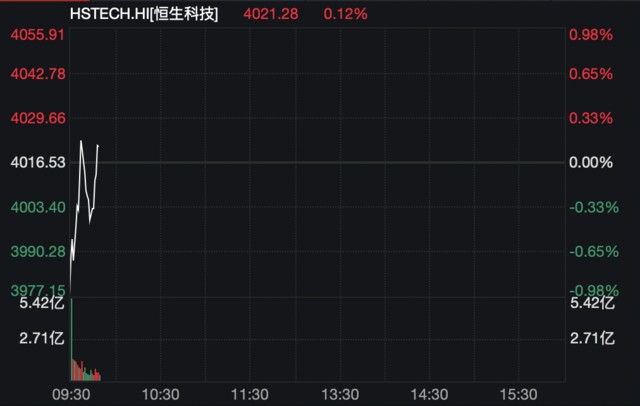 隨後恒指、國企指數低位小幅震盪,恒生科技振幅擴大翻紅。