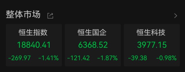 7 月 6 日,港股低開,恒指低開 1.41%,國企指數低開 1.87%,恒生科技低開 0.98%。