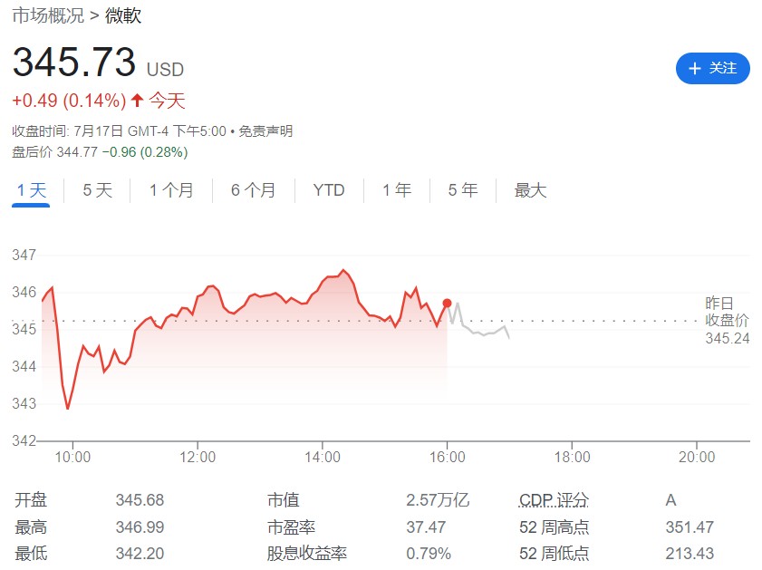 週一,動視暴雪大漲 3.49%,至 93.21 美元,續創兩年來新高,並且已經非常接近 2022 年初微軟提出收購該公司的 95 美元價格;微軟則微漲 0.14%,報收 345.73 美元。