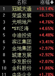房地产板块继续活跃,国创高新 3 连板,中迪投资直线涨停,锦和商管冲击 5 连板,济南高新、大龙地产、京投发展、南都物业等跟涨。