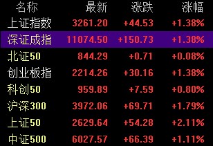 截止午间收盘,沪指涨 1.38%,深成指涨 1.38%,创业板涨 1.38%。