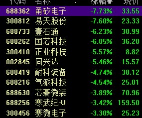 半导体板块继续下挫,北京君正跳水跌超 10%,易天股份、甬矽电子、必易微、同兴达跌超 5%。