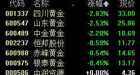 贵金属概念低迷,西部黄金近 3%,山东黄金、中金黄金等纷纷走低。