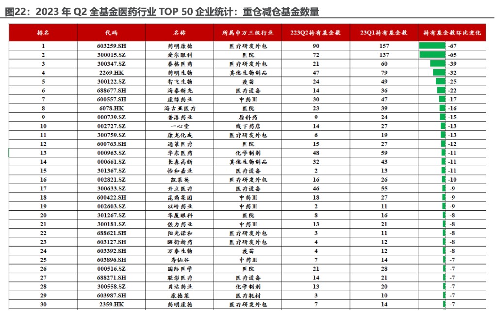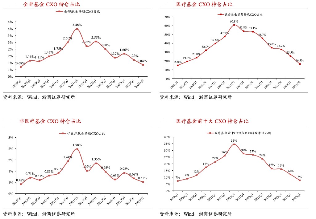 此外,從二季度末基金持倉數據統計來看,CXO 在不同類型的公募基金持倉均已達到 20 年 1 季度水平,尤其是醫療基金持倉大幅度下降,也反映了市場仍處於對 CXO 行業過度的悲觀預期中。