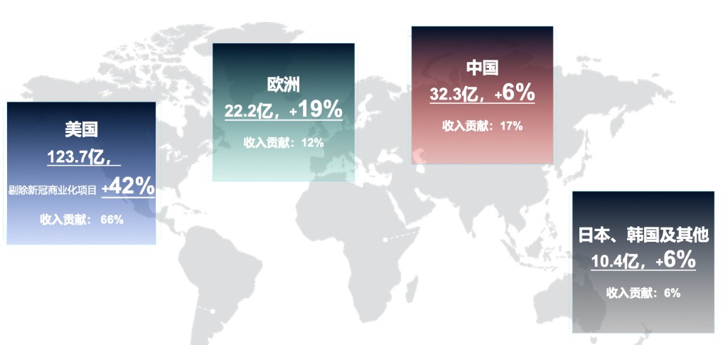 具體來看,上半年公司來自美國客户收入 123.7 億元,剔除新冠商業化項目後同比增長 42%;來自歐洲客户收入 22.2 億元,同比增長 19%;來自中國客户收入 32.3 億元,同比增長 6%;來自其他地區客户收入 10.4 億元,同比增長 6%。