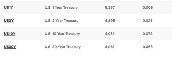 同時,美國 6 月 JOLTS 職位空缺降至 958.2 萬人,低於預期 960 萬和前值 982.4 萬人,創 2021 年 4 月份以來新低,意味着就業市場條件出現一定程度上的疲軟,一度短線壓低美債收益率,10 年期基債收益率短線跌穿 4% 整數位心理關闊,隨後重返 4.04% 上方。