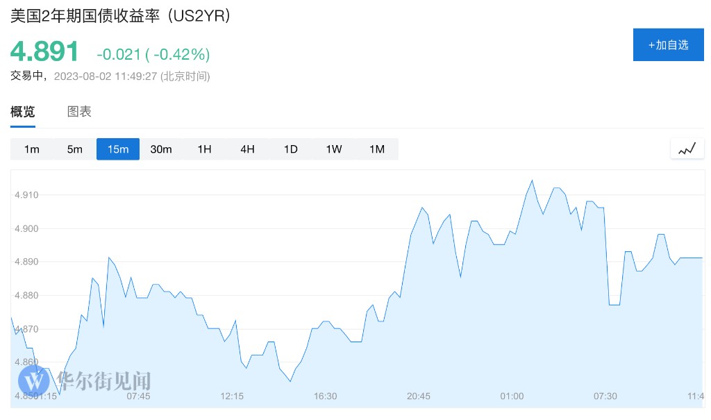 惠譽在亞洲市場開盤前宣佈下調評級,起初推高了美國國債,但隨後走勢趨穩,兩年期國債收益率下跌了一個基點。
