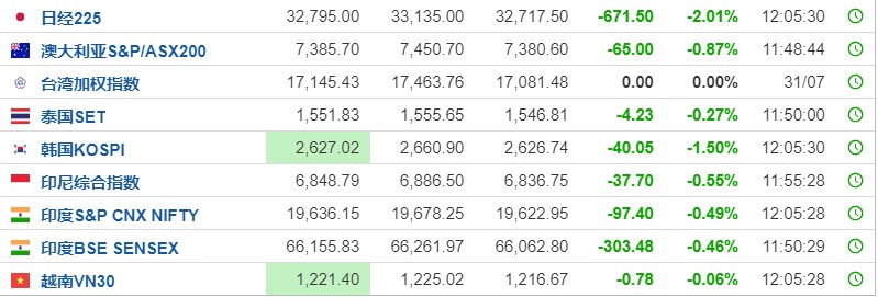 韓國 KOSPI 指數跌 1.5%,越南、印度、印尼等市場均下跌。