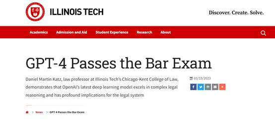 早在今年 3 月,美國伊利諾伊理工大學 - 芝加哥肯特法學院曾公佈消息,GPT-4 通過了美國統一律師資格考試。該考試一共 7 項,GPT-4 在民事訴訟、合同法、刑法、物權法、證據法 5 個學科考試中得分高於人類考生平均分,整體排名高於 90% 考生。