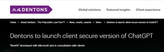 8 月 2 日,全球最大律師事務所之一的大成(Dentons)在官網宣佈,與微軟合作推出法律專業版 ChatGPT,輔助律師處理客户案件。