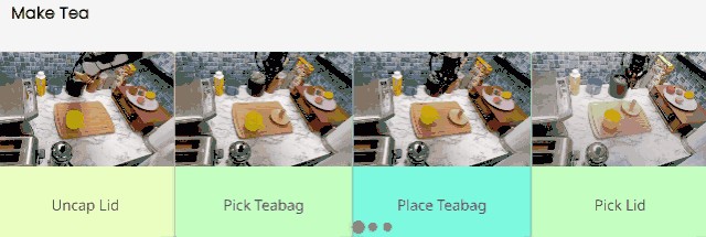 視頻中,RoboAgent 從抽屜裏拿出東西、又或是把茶包放進杯子裏,打開微波爐將碗放進去等。展示的便是 RoboAgent 能夠理解泡茶、加熱食物等任務中包含的一系列動作。