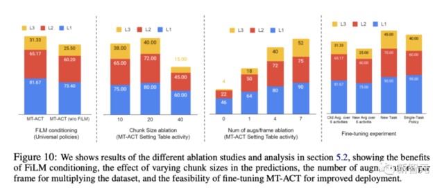 然後,再使用基於 FiLM 的調節方法,以確保圖像 token 能夠可靠地集中在語言指令上,從而在一個場景中可能存在多個任務時,MT-ACT 策略不會對任務產生混淆。
