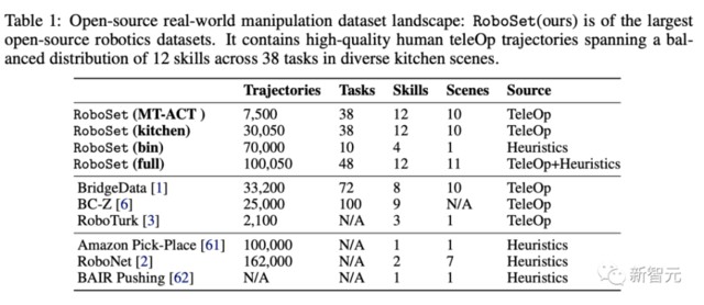 該數據集包含 12 種技能,橫跨多個任務和場景。