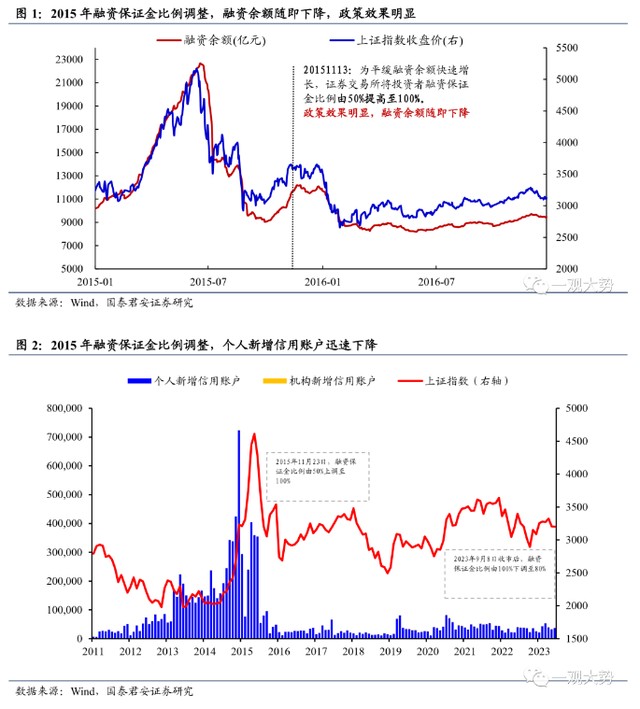 證監會調降融資保證金比例,積極做多 “投資端” 改革。2023 年 8 月 27 日晚,經中國證監會批准,上交所、深交所、北交所發佈通知,對兩融交易實施細則進行了修改,將投資者融資買入證券時的保證金最高比例由 100% 下調至 80%,並於 2023 年 9 月 8 日收市後實施。我們認為:1)證監會首次以調降融資保證金比例作為活躍資本市場措施,政策措施超預期,同步彰顯政策提振資本市場決心。2)融資保證金比例的放寬,能夠放大融資買入交易槓桿,更好滿足融資買入需求,融資交易情緒有望提振。3)參照歷史經驗,融資保證金比例調整政策效果明顯,高風險偏好資金入場,市場底部反彈在即,積極做多 “投資端” 改革。