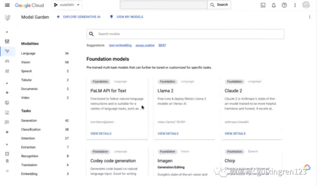 目前,在 Vertex AI 的模型花園中有超過 100 個大型基礎模型可供選擇,此次模型庫中最新加入了 20 個基礎模型,包括 Meta 的開源大模型 Meta 的 Llama 2 Anthropic 的 Claude 2。模型花園還為開發人員提供了篩選功能,用户能夠根據功能、規模、定製可能性等來為用例選擇最適合的模型,不僅能夠訪問強大的基礎模型,而且還能夠獲得調整所需的選擇和靈活性並大規模部署模型。