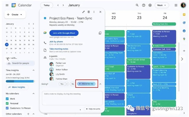 如果你有事不能參加會議,在日曆會議安排中,除了説 “No” 之外,你還有了一個 “AI替我參會”的新選項。你可以把你想要在會議中表達或者想要了解問題告訴 Duet AI,AI 助手則會在會議期間向參會者傳遞這些信息,並將得到的反饋和答案記錄下來方便你查閲。