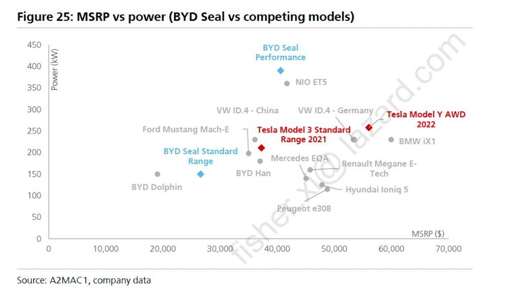 特斯拉已經開始向歐洲出口,比亞迪也將出口海豹到歐洲,與歐洲製造的傳統 OEM 產品競爭。