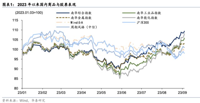 2023 年 6 月以來,國內商品明顯跑贏 A 股,在部分階段甚至出現了股票下跌而商品上漲的分化情形,我們認為主要原因如下: