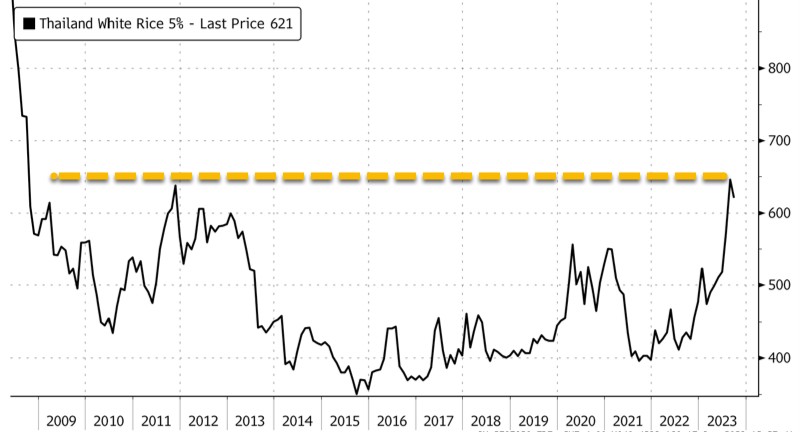 亞洲的大米產量約佔全球產量的 90%。厄爾尼諾天氣現象在印度等主要產區引發了大雨和乾旱,印度已經實施出口限制以確保充足的國內供應,令全球米價 “火上澆油”。