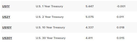 在等待美聯儲議息會議決策時,美債收益率再度集體小幅上行。5 年期美債收益率升至 4.504%,創 2007 年以來新高。德國 10 年期國債收益率漲 3 個基點至 2.74%,為 3 月份以來新高。