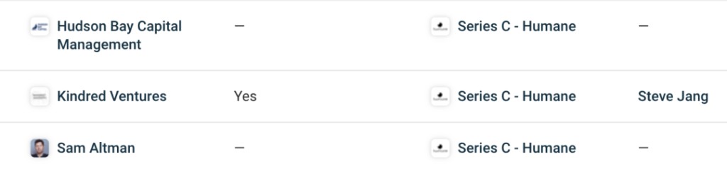 據悉,2020 年,Altman 與他人共同領導了 Humane 3000 萬美元 A 輪融資,隨後又參與了 2021 年 1 億美元的 B 輪融資和 2023 年 1 億美元的 C 輪融資。