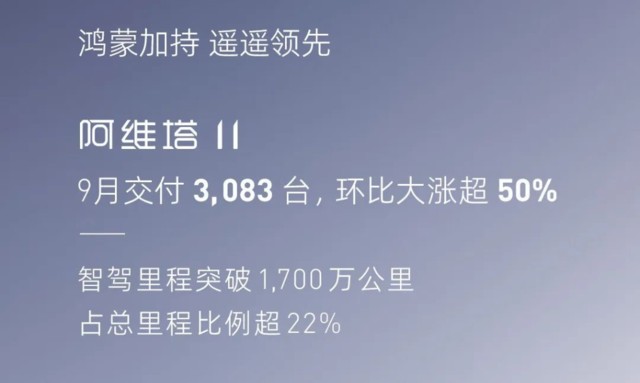 阿維塔 9 月份交付 3083 輛,阿維塔 11,環比上漲超 50%。