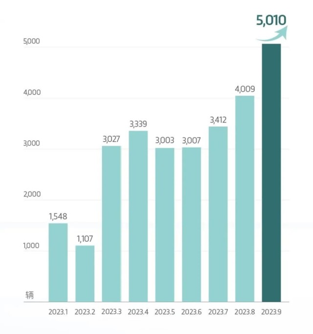 自 8 月交付數突破 4000 輛後,嵐圖繼續自我突破,9 月交付數據繼續突破 5000 輛。