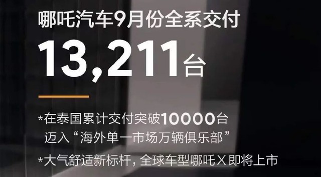 哪吒汽車 9 月全系交付 1.32 萬台,環比增長 9.15%,其 8 月份的交付數為 1.21 萬輛。