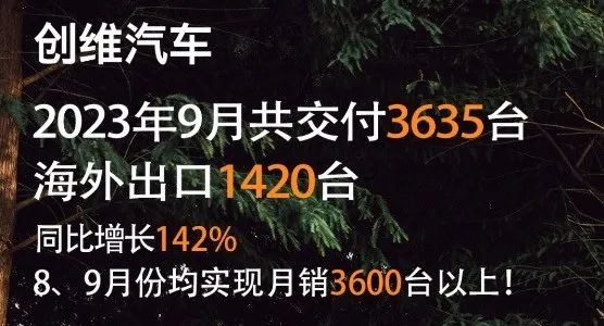 9 月份,創維汽車共交付 3635 台新車,較上月的 3693 台略微下降,其中,海外出口 1420 輛,同比增長 142%。
