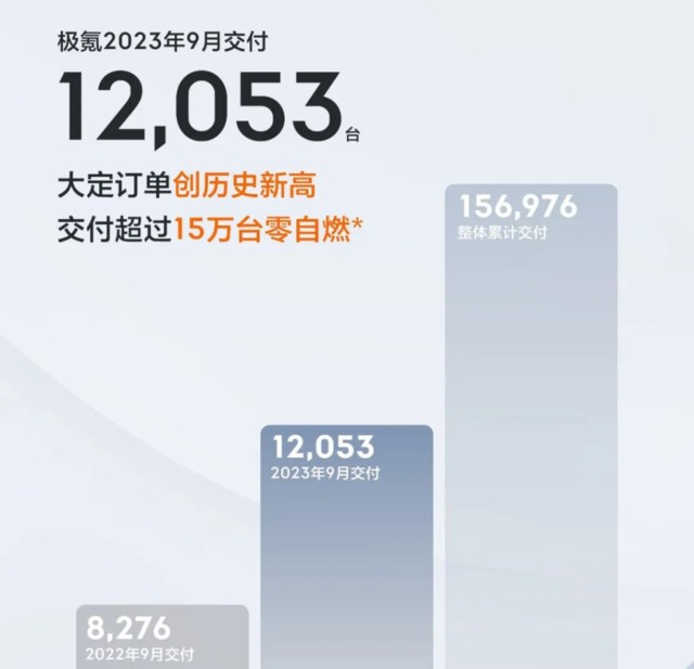 三季度,極氪累計交付 3.64 萬台,極氪表示,其 9 月份大定訂單與三季度成績皆創下新高。