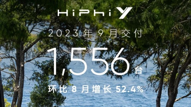 9 月份,高合旗下第三款車型 HiPhi Y 交付新車共 1556 台,環比增長 52.4%。
