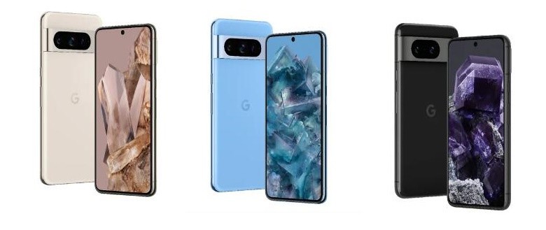 Pixel 8 系列較前代漲價 100 美元、搭載 Tensor G3 處理器,具有更智能的 AI 功能,可翻譯並大聲讀出瀏覽的網頁內容、概括內容要點,手機軟件持續更新七年。其中 Pixel 8 起售約 700 美元,比前代略小、亮度更高,Pixel 8 Pro 起售 999 美元,顯示屏攝像均升級,有視頻提升功能。谷歌同時發佈售約 200 美元的 Pixel 8 配套耳機 Pixel Buds Pro、起售約 350 美元的智能手錶 Pixel Watch 2、新版安卓系統 Android 14,以及生成式 AI 加持的手機助手 Assistant with Bard。