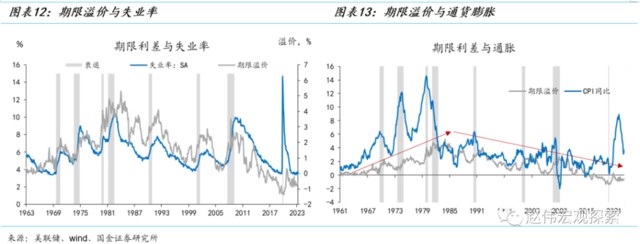 國金證券趙偉團隊表示,期限溢價主要取決於風險偏好和特定期限債券的供求關係。風險溢價方面,經濟週期、通貨膨脹及美聯儲政策的不確定性都是關鍵因素。同時期限溢價具有明顯的逆週期性:在經濟衰退區間明顯上行,擴張區間趨於下行,與失業率具有明顯的正相關性。