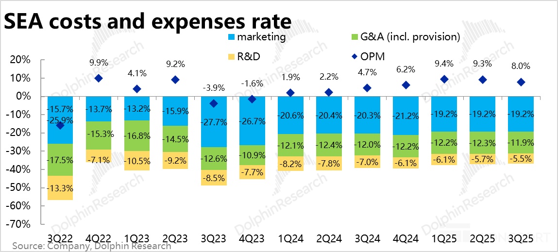 In fact, this quarter's performance is quite similar to last quarter's. Both quarters showed outperformance in growth, with the e-commerce and gaming segments accelerating in growth trends. However, corresponding to strong growth, the increase in costs and expenses led to pressure on profit margins, making Sea's performance this quarter not flawless.