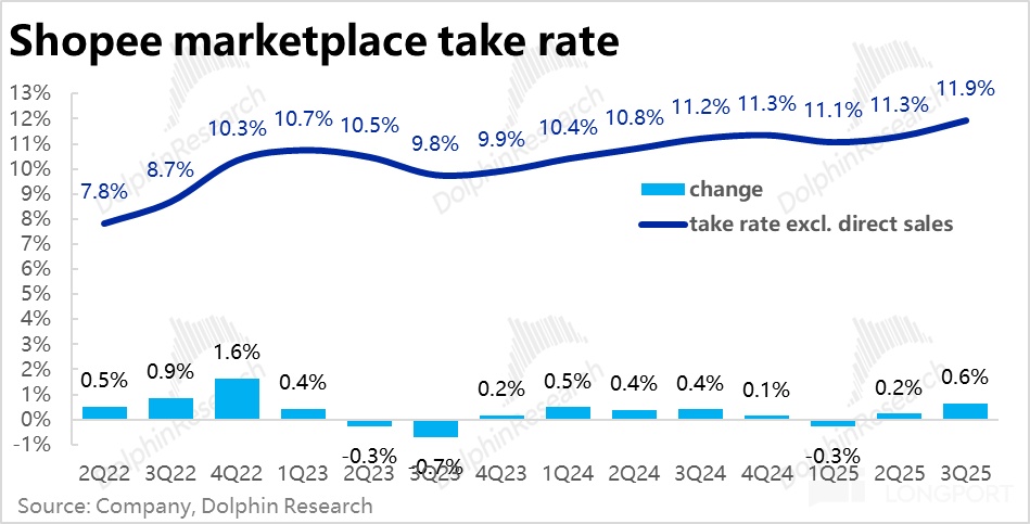 In terms of revenue and monetization, according to research, Shopee, Lazada, and TikTok Shop are still jointly improving monetization rates. Reflected in the financial report, Shopee's overall platform monetization rate reached 11.9%, increasing by 0.6 percentage points quarter-on-quarter, the highest increase since 2023.